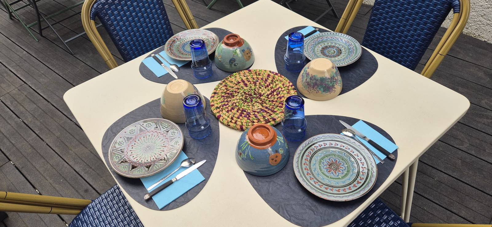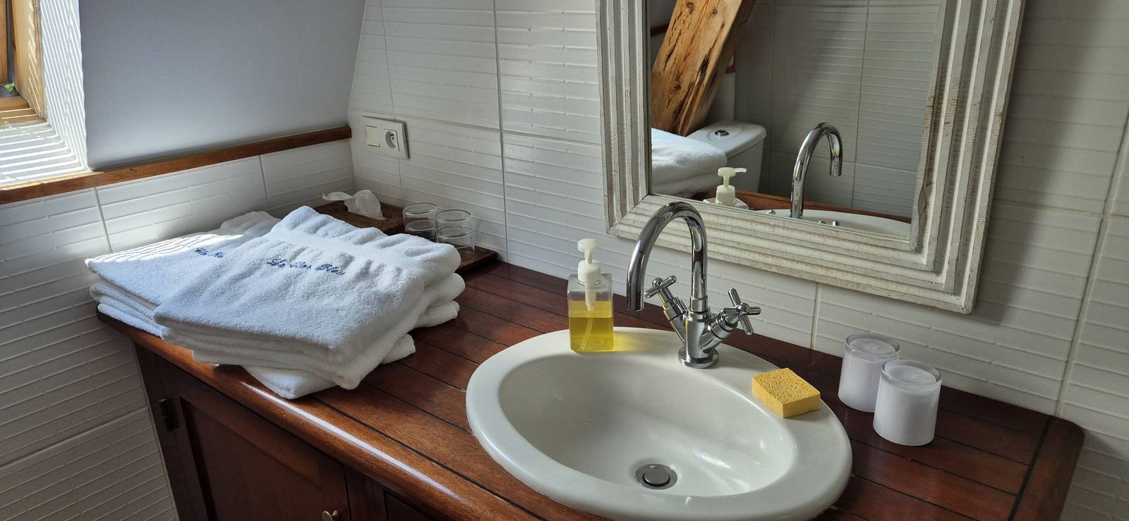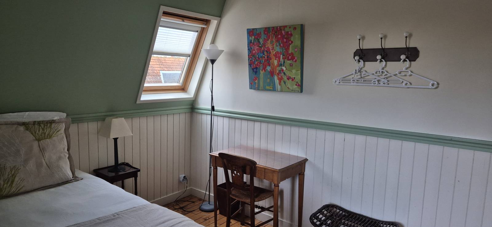 En el Clos Bleu en La Rochelle, cada una de las habitaciones tienen un color dominante diferente y las hemos decorado prefiriendo la calidez de la madera y los muebles familiares o antigüedades encontrados en los mercados de pulgas cercanos. Tienen ropa de cama de alta calidad con un edredón. Todas las habitaciones dan a las terrazas este u oeste de la casa. Cada baño está equipado con una ducha y un WC privados.